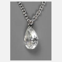 Ende 20. Jh., Weißgold gestempelt „14 kt” = 585/1000, Diamanttropfen von ca. 0,6 ct (getöntes Weiß, PII) an 44 cm langer Kette mit Federringverschluss, G ca. 2,0 g.
