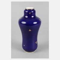 grüne Dreiecksmarke mit Jahreszahl 1903, Zusatzstempel Made in France, Ritznummer AV03, weitere Ritz- und Pinselzeichen, wulstiger Korpus mit kobaltblauem Fond und gestreutem Kleeblattdekor in Gold, Goldränder, H 23,5 cm.