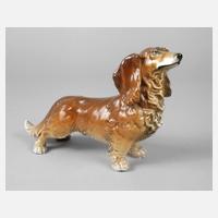 Firma Karl Ens, unterglasurblaue Mühlenmarke 1919–1972, Modellnummer 7129, Prägenummer 14, naturalistische Ausformung mit Unterglasurbemalung in Brauntönen, Schnauzenunterseite min. berieben, H 17 cm.
