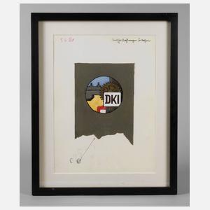 um 1920, rückseitig in Blei annotiert Nachlass Toni Wolter (1875–1929) sowie Kunsthandlungsstempel Antik & Kunst Kabinett Remagen, unsigniert, Vorderseite mit Inventarnummer 5621, bezeichnet Deutsche Kraftwagen Industrie – DKI, Mischtechnik (Gouache, Bleiststift, Tusche) auf Papier, Entwurf für eine Radkappe, im Passepartout hinter Glas in moderner Leiste gerahmt, min. gegilbt, PA 39 x 29 cm. Künstlerinfo: dt. Landschafts- und Industriemaler, ab 1897 an der Kunstakademie Düsseldorf als Schüler von Ernst Roeber, Willy Spatz und Eugen Dücker, 1907 als Assistent von Eugen Bracht in Dresden, zu Beginn des 1. WK wurde Wolter „nicht kriegsverwendungsfähig” geschrieben und begann im Stanz- und Hammerwerk seines Schwiegervaters als technischer Zeichner zu arbeiten, 1925 erhielt er vom deutsch-amerikanischen Großindustriellen Henry K. Janssen den Auftrag, dessen Textilmaschinenfabrik „Wyomissing Industries” in Wyomissing zu malen, nach der Rückkehr aus den Vereinigten Staaten erhielt Wolter zahlreiche Aufträge von der Industrie, Quelle: Internet.