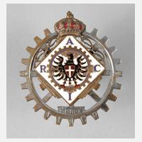 1930er Jahre, gemarkt RACI (Reale Automobile Club d'Italia) sowie AIACR (Association Internationale des Automobile Clubs Reconnus), nummeriert P12697, Messing, teils verchromt bzw. emailliert, leichte Altersspuren, D 7,5 cm.