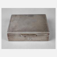 datiert 1955, Holzkorpus mit quillochierter Silbermontierung, mehrfach gemarkt 51 IE 835 sowie HB mit Krone, Besitzermonogramm HK, Deckelinnenseite mit emaillierter Plakette Opel 72, der ”Opel 72 Wagen Club” war ein in den 1930er Jahren gegründeter Verein für verdiente Opel-Verkäufer mit ausgezeichneten Jahres-Verkaufszahlen, min. Altersspuren, Maße 3 x 11 x 9,5 cm.