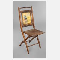 Dresden, um 1900, mit Aufschrift Georg A. Jasmatzi Act.ges. Dresden, in der Lehne farbig lithografierte Werbung für POI Zigaretten, starke Alters- und Gebrauchsspuren, Lithografie mit Fehlstelle, H 93 cm.