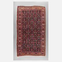 2. Hälfte 20. Jh., typisches Dekor über rostrotem Fond, kleinteilige umlaufende Bordüren, gute Erhaltung, Maße 189 x 124 cm.