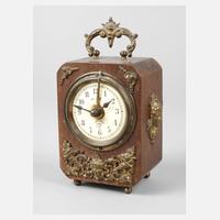 um 1880, massives Nussbaumgehäuse, verziert mit figürlichen Bronzeapplikationen, auf emailliertem Ziffernblatt und verso gemarkt Lenzkirch A.G.U., Werk mit Kurzpendel, überholungsbedürftig, H 13 cm.