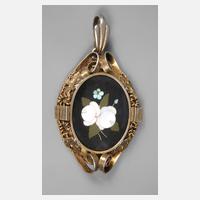 um 1860, Silber mit Resten alter Vergoldung, ovale Platte mit Blumenbukett, umgeben von floralem, teils plastisch gearbeitetem Zierwerk, rückseitig kleine Glasscheibe zum Öffnen, leichte Tragespuren, Maße ca. 55 x 32 mm, G ca. 10,9 g.