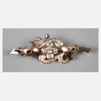 um 1870, Gelbgold geprüft 333/1000, florale, durchbrochen gearbeitete Form, besetzt mit zahlreichen Diamantrosen, leichte Altersspuren, Maße ca. 53 x 20 mm, G ca. 4,2 g.