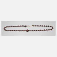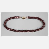 2. Hälfte 19. Jh., Verschluss Gelbgold geprüft 333/1000, aus facettierten geflochtenen Granatperlen, leichte Altersspuren, L 44 cm.