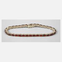 Ende 20. Jh., Gelbgold gestempelt 333, umlaufend besetzt mit oval facettierten Granaten in Krappenfassung, verdecktes Kastenschloss mit Sicherheitsacht, L ca. 17 cm, G ca. 9,9 g.