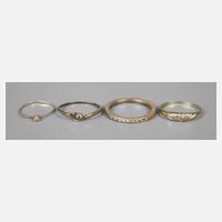 Ende 20. Jh., Gelbgold gestempelt 585 bzw. geprüft, besetzt mit synthetischem Zirkonia bzw. Diamanten, unterschiedliche Erhaltungen, RW 18–20 mm, G ca. 6,8 g.