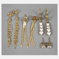 Ende 20. Jh., Gelbgold gestempelt 333, zweimal mit Besatz aus synthetischen Zirkonia, teils Tragespuren, L max. 32 mm, G gesamt ca. 4,6 g.