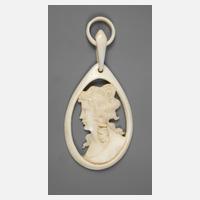 um 1900, wohl Erbach, feine Durchbrucharbeit mit dem Seitenportrait einer Frau, leichte Altersspuren, Maße ca. 74 x 35 mm, G ca. 4,8 g.