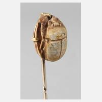 1. Hälfte 20. Jh., Gelbgold geprüft 585/1000, besetzt mit fein geschnittenem Skarabäus in Krappenfassung, Nadellänge ca. 62 mm, G ca. 2,9 g.