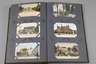 um 1910 bis um 1940, ca. 340 Postkarten, zahlreiche topographische Karten, wenige Motivkarten, unter anderem Jena vom Landgrafen aus gesehen (Hofkunstanstalt Löffler & Co. Greiz), Weida Blick auf das Schloss, Gera (Reuss) Schloss Osterstein, Weimar Partie mit Hofkirche, Gruss aus Arnstadt, ... von der Wartburg, ... aus Sonneberg, ... von der Kösseine, ... aus Dillenburg, ... aus Weimar (Fürstengruft), ... aus Hohensyburg, ... aus Hannover (Waterloo-Denkmal), ... aus Helgoland, ... aus München, ... aus Elmenhorst, ... aus Biedenkopf, ... vom Staffelsee, ... vom Hohen Stein bei Graslitz und weitere, teilw. farbig lithogr., Album intakt, mit normalen Altersspuren, am Rücken Goldprägung ”Album”, Maße ca. 39 x 25 cm.