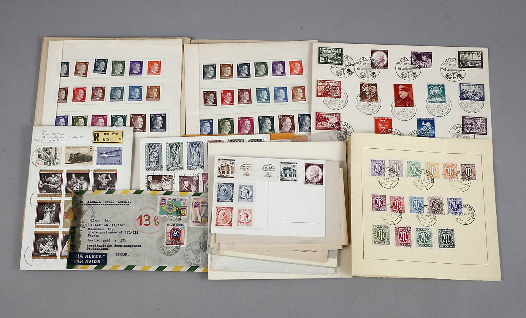 tlw. besammeltes Album, postfrisch und gestempelt, ab 1945 (Zonen, EAG, Berlin) mit besserem Anteil Belegen DR um 1940–44 (Sonderst., Einschr., Bahnpost etc.) mit Belegen Österreich, Ansehen!