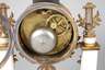 Paris, um 1785, Gehäuse aus schwarzem und weißem Marmor, reich mit vergoldetem Bronzezierrat geschmückt, durchbrochen gearbeitete Balustraden, Festons, Perlstäbe sowie blumengeschmückte Amphoren, fast makelloses Emailziffernblatt mit arabischen Zahlen, in Blau signiert Rouvière à Paris, Verschraubungen des Gehäuses allgemein etwas locker, Marmor mit zwei kleinen Fehlstellen rückseitig, Werk läuft, H 46 cm. Info: Jean Louis Rouvière wird 1781 in Paris Meister und war in der Rue Rohan ansässig. Quelle: Tardy, Dictionnaire, S. 577, vgl. Kjellenberg, Pierre: Encyclopédie de la Pendule Francaise du Moyen Age au XXe siècle, Paris 1997, S. 205, F u. G. (611136).