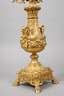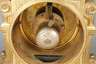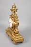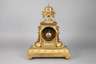 auf Ziffernblatt gemarkt Lerolle Fréres, Paris, um 1880, Bronze feuervergoldet, fein ziseliert und partiell poliert, übergroße Kaminuhr mit zwei Girandolen als Beisteller, geschmückt mit Girlanden, Festons, Voluten und einem breiten Fries mit Akanthusblattmotiv, im Sockel Relief mit spielenden Putten nach Clodion, Pendulenwerk gemarkt BV 1808, mit Halbstundenschlag auf Glocke, emailliertes Ziffernblatt mit römischen Zahlen und arabischer Minuterie, dieses mit drei kleinen Abplatzern und einem kurzen Haarriss im Randbereich, Gehwerk läuft, Schlagwerk löst nicht aus, ein Arm der Girandole gebrochen, Maße: 68 x 53 x 16, H Girandole 73 cm. Info: Die Brüder Lerolle, die 1836 ihrem Vater folgten, sind 1863 als Bronzebildhauer aufgeführt. Sie gewannen Medaillen an den Universalausstellungen von London und Paris im Jahre 1834, 1849, 1851 und besonders im Jahre 1855 die Medaille der 1. Klasse für einen Tisch, der von der Prinzessin von Butera gekauft wurde.