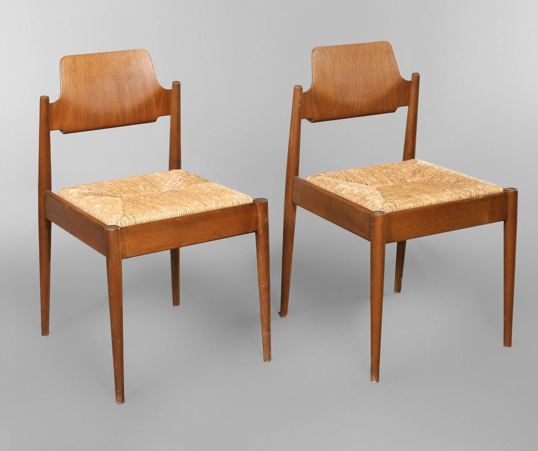Modell SE 119, Entwurf 1952, hergestellt bei Wilde und Spieth, Esslingen, 1960er Jahre, Buche massiv und Schichtholz, braun gebeizt, Sitzfläche aus Schilfrohr, geringe Gebrauchsspuren, H 82 cm, SH 46 cm.