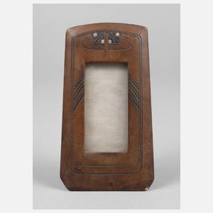 Nürnberg, um 1905, rückseitig geprägte Monogramme NH sowie Z Co, hochrechteckiger, leicht konisch zulaufender Rahmen mit geprägter Lederbespannung, originaler Glaseinsatz sowie rückseitiger Aufsteller, leichte Altersspuren, H 16 cm.