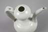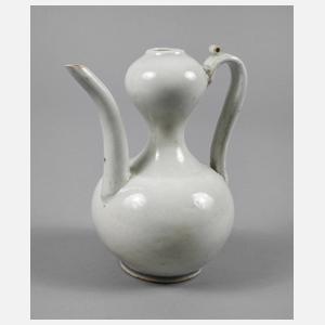 China, wohl 12. Jh., ungemarkt, cremefarbener Scherben in bläulich-weißer Monochromglasur, Doppelkürbisform mit zartem Ausgießer und leicht geschwungenem Bandhenkel, unglasierter Boden, etwas brandfleckig, winz. best., H 18,5 cm.