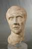 20. Jh., männliche lebensgroße Büste, erinnert entfernt an Bildnisse der römischen Soldatenkaiser, Marmor, auf Glassockel, normale Alters- und Witterungsspuren, H ca. 35 cm, B ca. 18 cm.