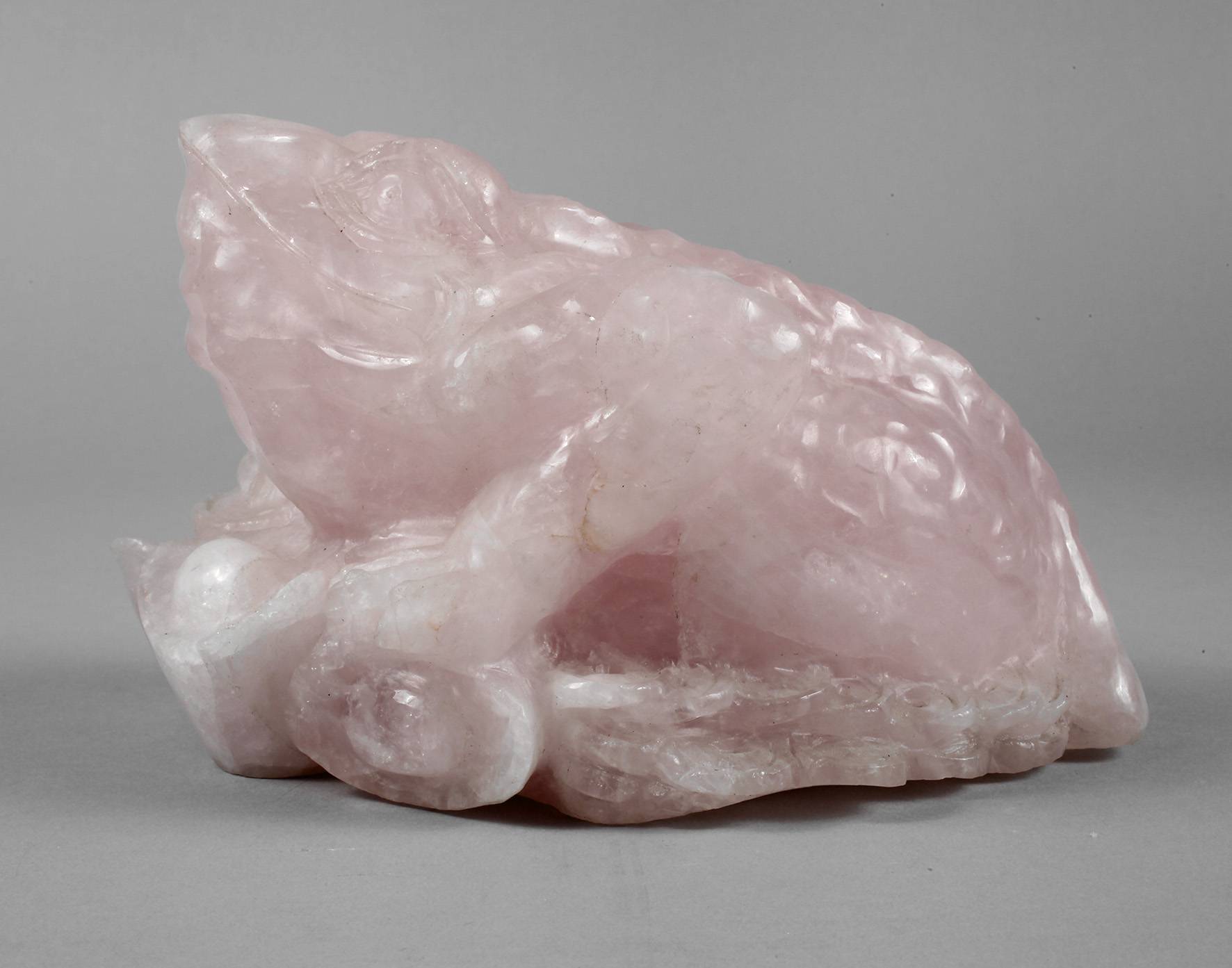20. Jh., ungemarkt, vollplastisch gearbeitete Kröte auf stilisiertem Wellensockel, leichte Altersspuren, L 18 cm.
