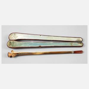 Anfang 20. Jh., Gestänge aus einer menschlichen Elle gefertigt, Mundstück aus Bernstein, versilberte Manschette, Pfeifenkopf aus Meerschaum, im original lederbezogenen Etui, L 28 cm.