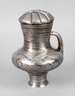 Deckelgefäß in Trompe-l'oeil-Technik, Beschaumeistermarke 1865 DB?, Herstellermarke mit Doppelkopfadler, Silberpunze 84 Zolotniki, Schlüsselmarke St. Petersburg, weitere Kopfpunze nach links, im Deckel kyrillische Meisterpunze PB im Rechteck, innen vergoldeter Krug mit Henkel und fein gravierten, umlaufenden geflochtenen Bändern, am Fuß Dedikation „Zum Andenken an Waldemar“, Besitzermonogramm EL ligiert, sehr guter Zustand, H 25 cm, G ca. 1307 g.