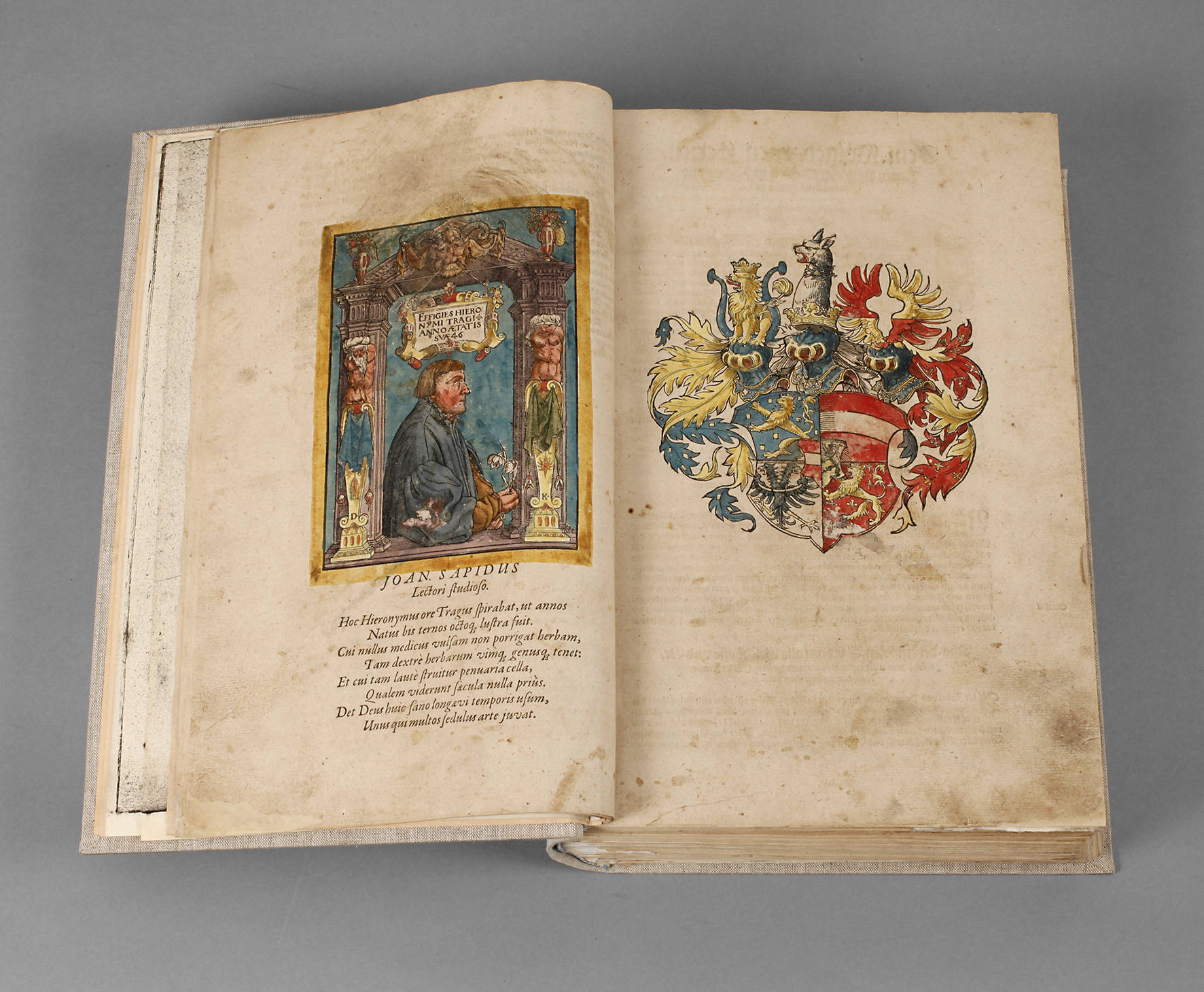 Kräutterbuch, weylandt des weitberhümten undt hochersharnen Herren Hironymi Tragi, genant Bock ... mit vleiss übersehen, und mit der kräutter zunamen, .... gemheret und gebessert durch Melchiorem Sebizium ... sampt angehenckten Speisskammer, in Verlegung Wilhelm Christian Glaser, Strassburg 1630, Format 4°, 25 Blätter, 892 S., 40 Blätter, 94 S. und 5 Blätter, mit zahlr. handkolorierten Textholzschnitten, darunter Portrait und Wappen des Johan. Sepidus, in neuzeitlichem Leineneinband, restauriertes Exemplar mit Alters- und Gebrauchsspuren, einige Blätter mit Eck- bzw. Randergänzungen (kaum Text und Abb. tangierend), ca. fünf komplett laminierte Blätter und ca. 25 in Kopie ergänzte Blätter.