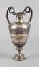 Nürnberg, Mitte 19. Jh., gestempelt 13 Lot und N im Kreis, unleserliche Meisterpunze, reich verziert mit Ornamentbändern aus Blattmotiven, Buckeln, Palmetten und verschlungenen Ranken mit Blüten, an der Mündung verschlungene Schlangenhenkel, etwas gedellt, Altersspuren, H 35 cm, G ca. 1229 g.