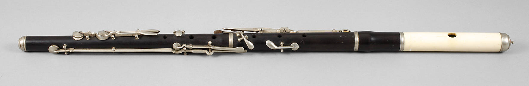 um 1910, ungemarkt, Korpus aus Ebenholz mit Neusilbermontierungen, Mundstück aus Elfenbein, dieses mit Trocknungsriss, sonst normale Alters- und Gebrauchsspuren, L ges. 70 cm.