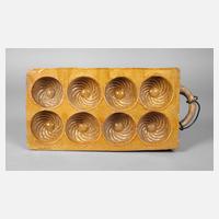 kleiner Birnenkrug, um 1750, am Boden geritztes Zeichen C?, leicht rötlicher Fayencescherben mit mangangeschwämmeltem Korpus, schauseitig Kartusche mit Gärtnereisymbolik, flacher Zinndeckel mit Muscheldrücker, innen eine kaum sichtbare Punze Krone?, restauriert, der Henkel alt in Zinn ergänzt, Altersspuren, trotz Restaurierung ein attraktives Stück, H 19 cm.