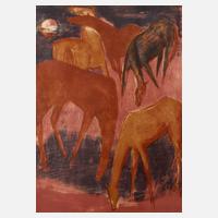 Gruppe von fünf Pferden im Mondschein, Farblithographie, unter der Darstellung in Blei rechts signiert und datiert G. Kirchner (19)56 sowie links nummeriert II. 44/50, hinter Glas gerahmt, Darstellungsmaß ca. 64 x 48,5 cm.