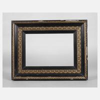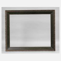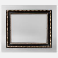 Rahmen aus ca. 9,5 cm breiter, stark steigend profilierter, mit Eierstab beschnitzter, ebonisierter und partiell vergoldeter Holzleiste mit schmaler Goldinnenkante, Gehrungen geschnitten, Altersspuren, Falzmaße ca. 69 x 75 cm.