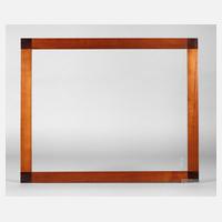 Rahmen aus ca. 3,5 cm breiter, schlicht profilierter, kirschholzfurnierter Weichholzleiste, mit wohl in Ebenholz dunkel abgesetzten, quadrierten Ecken, Gehrungen geblattet und über Eck gearbeitet, 2. Hälfte 20. Jh., geringe Altersspuren, Falzmaße ca. 50,5 x 40,5 cm.