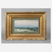 um 1860, Rahmen aus ca. 6 cm breiter, steigend profilierter, gestuckter und vergoldeter Holzleiste, Gehrungen geschnitten, Erhaltungsmängel, Falzmaß ca. 19,5 x 32 cm, beigegeben Aquarell ”Seestück” unter Passepartout und hinter Glas.