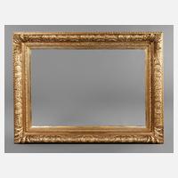 Rahmen aus ca. 13 cm breiter, steigend profilierter, mit Eck- und Mittelkartuschen gestuckter sowie vergoldeter Holzleiste, Gehrungen über Eck gearbeitet, Bestoßungen, etwas restaurierungsbedürftig, Falzmaße ca. 105,5 x 81,5 cm.