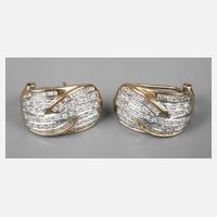 neuzeitlich, Weiß- und Gelbgold gestempelt 585, besetzt mit je 44 Rechteckdiamanten und 28 Achtkantdiamanten im Gesamtgewicht von ca. 1,2 ct, Maße ca. 18 x 12 mm, G gesamt ca. 5,7 g.