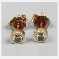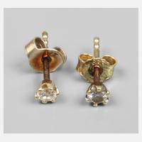 um 2000, Gelbgold gestempelt 585, besetzt mit je einem Brillanten von ca. 0,1 ct, in Krappenfassung, G gesamt ca. 1 g.
