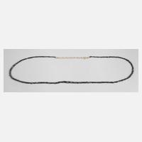 neuzeitlich, Verschluss und Verlängerungskettchen Gelbgold gestempelt 585, unzählige schwarze Naturdiamanten auf Stahlseil, L gesamt ca. 55 cm, G ca. 5,8 g.