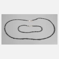neuzeitlich, Verschluss Silber gestempelt 925, unzählige schwarze Naturdiamanten auf Stahlseil, L Kette ca. 45 cm, L Armband 20 cm, G gesamt ca. 8,1 g.