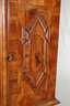 in der Füllung datiert 1714, Nussbaummaser und Nussbaumwurzel auf Nadelholz furniert, zweitüriger Korpus mit aufwendigen Bastionsfüllungen, diese mit farbiger figürlicher Intarsie, in verschiedenen Edelhölzern, teilweise farbig gebeizt, Darstellung zweier Bauersfrauen, innen originale Farbfassung mit Sternenmotiv über blauem Grund, sehr fein gravierte Schlossplatten und Türbeschläge, furnierte Inneneinrichtung mit acht Schüben, darüber Regal mit zwei Ablagen, in Schlagleiste verstecktes Schlüsselloch, originaler Schlüssel, eine Tür mit Trocknungsrissen im Furnier, sonst guter Zustand, Maße H 180 x 131 x 51 cm. Provenienz: Nachlass Antikhandel Herrmann Kämpfer Leipzig, Kupfergasse 3, war bis Anfang der 1960er Jahre tätig.