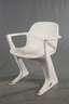 DDR-Designklassiker aus der Serie VARIO PUR, Entwurf: Ernst Moeckl und Siegfried Mehl 1968, Ausführung Chemiekombinat PCK Schwedt, Modell Kangaroo II, Polyurethan weiß lackiert, 1970er Jahre, zwei Armlehnstühle und neun Stühle, Alters- und Gebrauchsspuren, teilweise Farbfehlstellen, H 76, SH 44 cm.