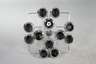 deutsch, 1970er Jahre, verchromtes, geometrisch gestaltetes Metallgestänge mit abgehängten Kugelschirmen, 12-flammig elektrifiziert, min. Korrosionsspuren, H 83 cm, D 81 cm.