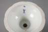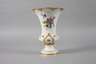 unterglasurblaue Schwertermarke 1934-1945, 1. Wahl, geritzte Modellnummer 2790, Präge- und Pinselnummer, zweiteilig verschraubte Kraterform ohne Henkel, mit reliefierten Kartuschen und Rocaillen, Dekor ”Blumenbukett” und Streublümchen in feiner polychromer Aufglasurmalerei, Goldbronze- und Glanzgoldstaffage, Goldrand, Vergoldung minimal berieben, Standfläche mit kleinem Chip, H 24,5 cm.