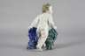 grüne Mühlenmarke sowie Zusatz Ens-Porzellan Volkstedt 1919-1972, naturalistische Ausformung und Unterglasurbemalung, schreitender nackter Knabe mit Weinlaubkranz, jeweils eine große Traube in den Händen mitschleifend, Hüfttuch mit kleinem Brandriss, H 20 cm.