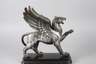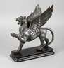 um 1930, Metallguss patiniert, Darstellung des mythisches Mischwesens mit löwenartigem Leib, dem Kopf eines Raubvogels, mächtigem Schnabel und hohen Flügeln, auf einem geschwärzten Holzsockel verschraubt, altersgemäßer Zustand, H 34 cm.