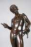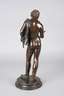 Mitte 19. Jh., unsigniert, Bronze dunkel braun-grün patiniert, Aktdarstellung des Gottes Dionysos mit passenden Attributen, wie dem über die Schulter geworfenen Ziegenfell (Nebris) und mit Rebensprossen bekränztem Haupt, an den Füßen reich verzierte geschnürte Sandalen, die Haltung lässt sich mit dem rechts zu ergänzenden Panther erklären, welcher das wichtigste Begleittier des Dionysos darstellt, der Name ”Narziss von Pompeji” leitet sich aus dem Irrglauben ab, der Jüngling mit dem gesenkten Kopf würde sein Spiegelbild im Wasser betrachten, die in Pompeji gefundene flavische Originalskulptur, die nach hellenistischem Vorbild geschaffen wurde, befindet sind im Museo Archeologico Nazionale in Neapel, auf ornamental verzierter, gekehlter, runder Plinthe, gute Erhaltung, qualitätsvoller Guss, H gesamt 48,5 cm. Quelle: Le collezioni del Museo Nazionale Archeologico Napoli (1989) und Internet.