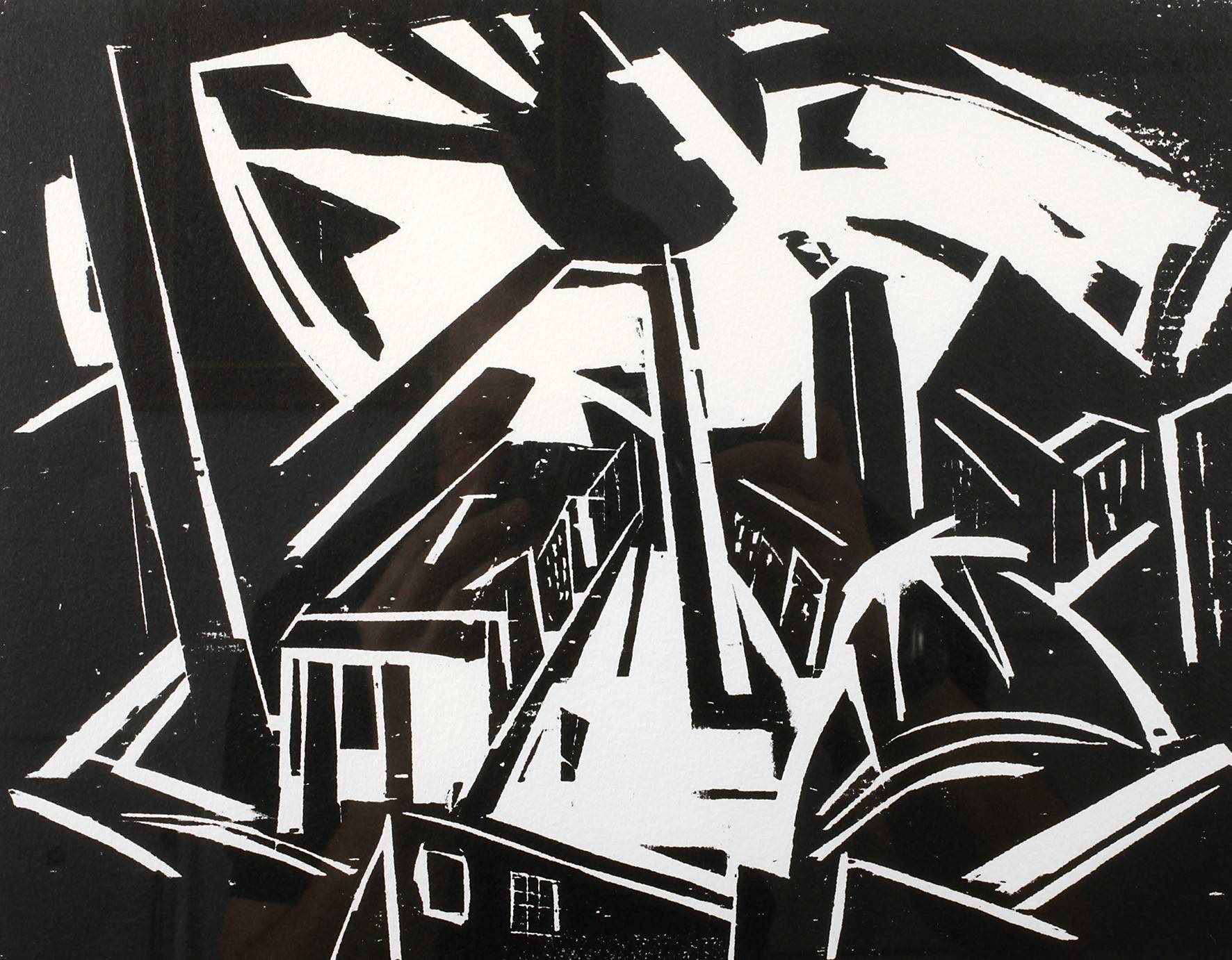 Straßenzeile im grellen Sonnenlicht, erschienen 1996 in einer Edition für die Griffelkunst-Vereinigung (281B5) kraftvolles, expressives Blatt, Holzschnitt auf Bütten, Entstehung des Druckstockes um 1910-20, unsigniert, rückseitig Stempel einmalige Auflage für die Griffelkunst 1996 und ”Nachlaß Heinrich Stegemann (1888-1945) Städtisches Museum Flensburg”, an der unteren Blattkante minimal beschädigt, sonst sehr gut erhalten, hinter Glas gerahmt, Druckmaß ca. 26,5 x 34 cm. Künstlerinfo: dt. Maler, Grafiker und Bildhauer (1888 Hamburg bis 1945 Hamburg), 1904-06 Malerlehre und Besuch von Kursen bei Franz Breest an der Kunstgewerbeschule Altona, 1906-07 durch Stipendium Studium an der Kunstgewerbeschule Hamburg und 1909-13 Studium an der Kunstakademie Weimar, nach Studienreise in Italien 1915 Einberufung und Soldat an der Westfront, hier traumatische Erlebnisse, die den Künstler ein Leben lang begleiten, ab 1918 freischaffend in Hamburg tätig, Mitglied der Novembergruppe, seit 1920 der Hamburger Künstlerschaft und ab 1927 im Deutschen Künstlerbund, 1937 Beschlagnahme von 43 seiner Arbeiten durch die Nationalsozialisten und Einstufung als entarteter Künstler, 1943 durch Bombenangriff auf Hamburg nahezu vollständige Zerstörung seines Werkes, der Nachlass des Künstlers befindet sich heute im Städtischen Museum Flensburg, Quelle: Thieme-Becker, Vollmer, Wikipedia und Internet