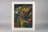 Blick in einen dämmrigen Hinterhof, mit Treppenstiege und zum Trocknen aufgehängter Wäsche, pastose Malerei mit breitem Pinselduktus in kraftvoller Farbigkeit, Öl auf Hartfaser, links unten monogrammiert und datiert ”FB (19)56”, rückseitig auf der Hartfaserplatte vom Künstler betitelt, datiert und signiert ”Der Hof im Hause Dr. Polster Mylau/Vogtl. Fredo Bley 1956” und auf dem originalen Rahmen vom Künstler bezeichnet ”Fredo Bley VBK-DDR, 9801 Buchwald/Vogtl. Bez. Karl-Marx-Stadt”, original gerahmt, Falzmaße ca. 58,5 x 45,5 cm. Künstlerinfo: eigentlich Fredo Robert Bley, dt. Maler und Graphiker (1929 Mylau im Vogtland bis 2010 Reichenbach), 1943-46 Lithographenausbildung bei Carl Werner in Reichenbach, 1948-56 Lehre und Tätigkeit als Dekorations- und Schriftenmaler, Anregung durch den Maler Walter Löhner, weitestgehend Autodidakt, seit 1952 Mitglied des Verbandes Bildender Künstler (VBK) der DDR, 1957-64 als Ziegelei- und Baufacharbeiter tätig, ab 1966 freischaffend, beschickte zahlreiche Ausstellungen, unter anderem 2002 im neuen Bundeskanzleramt Berlin, tätig in Mylau, später in Buchwald, Quelle: AKL, Eisold ”Künstler in der DDR”, Frank Weiß ”Malerei im Vogtland” und Wikipedia.